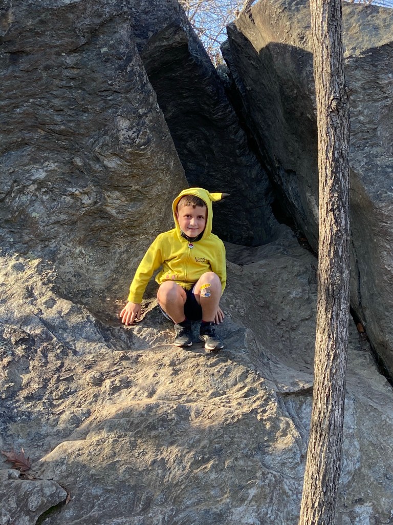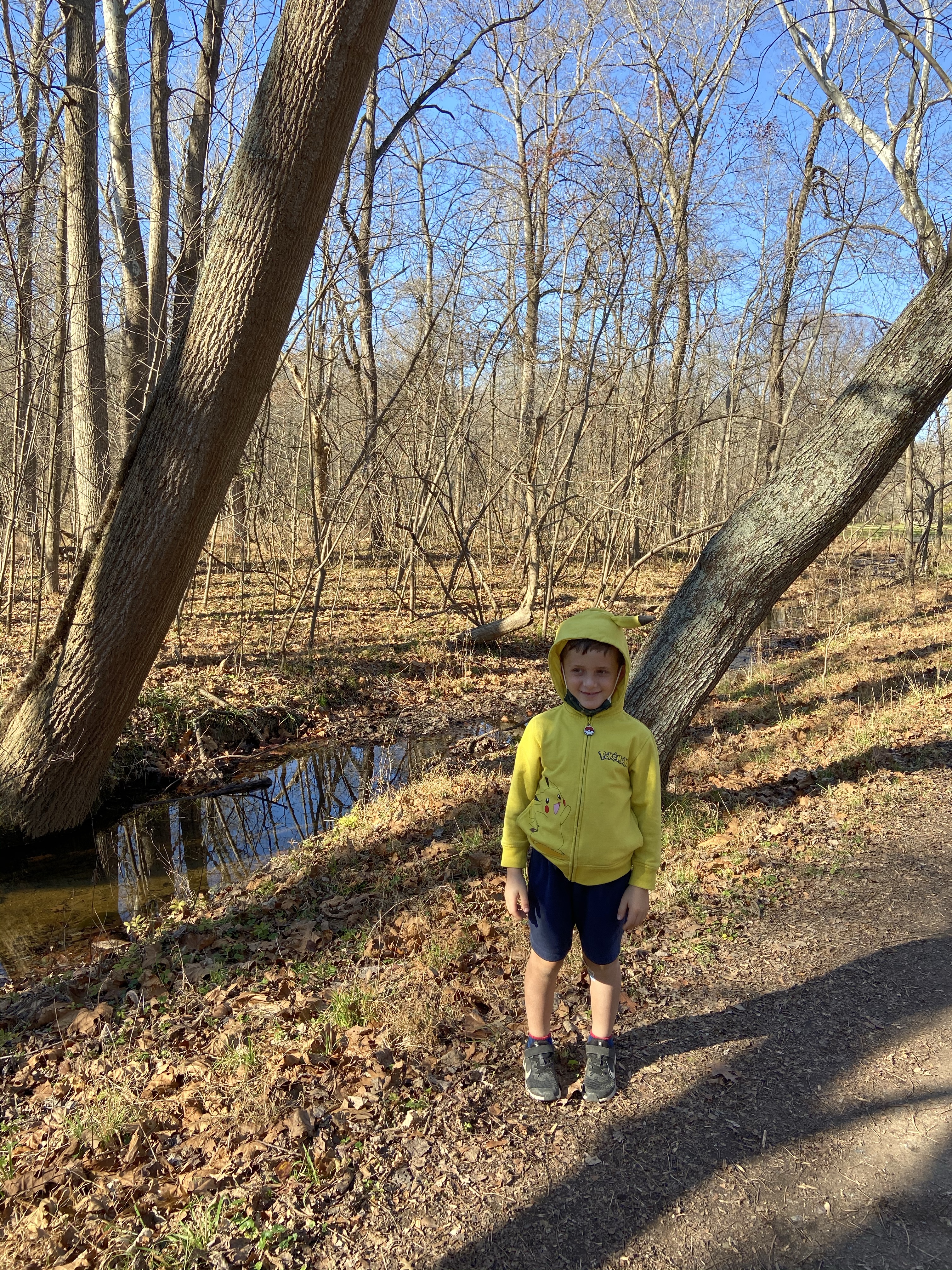 The boys are happy to hike along trails, and Hudson is quite partial of finding “walking sticks” and turning them into pretend weapons. Sigh. I reminded him that he’s attended gun control rallies in the past (SMH).