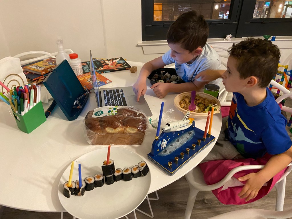 Zooming with the Isaacs on sushi Shabbat / 2nd night of Chanukah