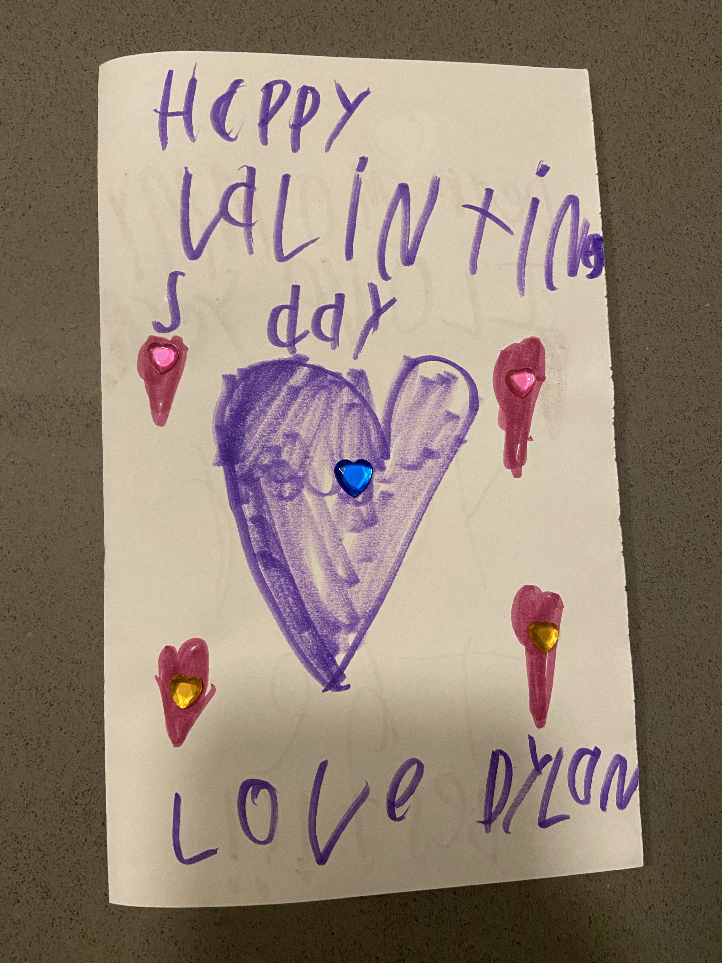 We also did some Valentine’s Day art projects. I swear I gave no instructions and they both ended up making me jewelry and V Day cards. So sweet.