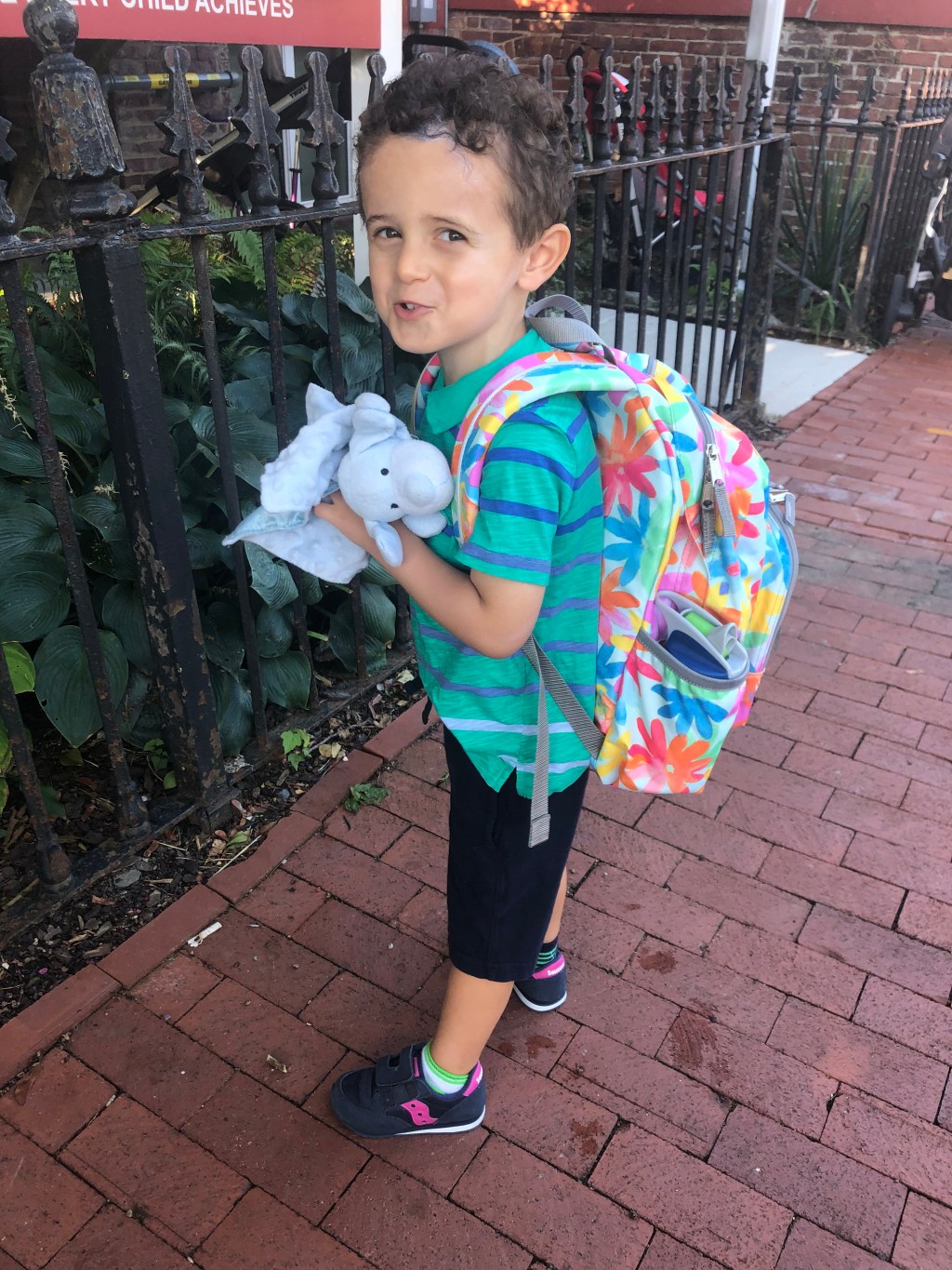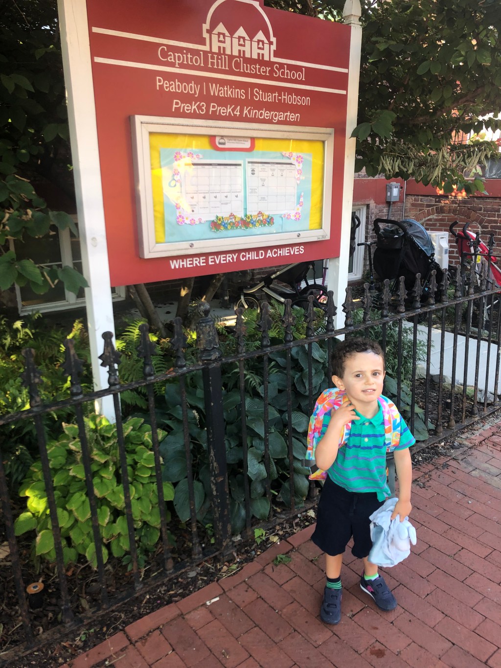 Hudson is now a preschooler in DC public schools! He had a blast on his first day – he was familiar with Peabody after seeing Dylan go there for a year, and he had buddies in his class that he already knew from his old school or because they’re Dylan’s friends’ younger siblings. And, when I picked him up from the playground at the end of the day, he said “Mommy, can I stay longer?” A sign of a very successful first day!