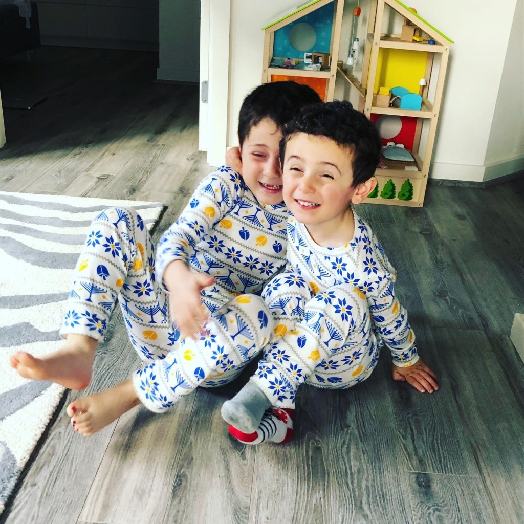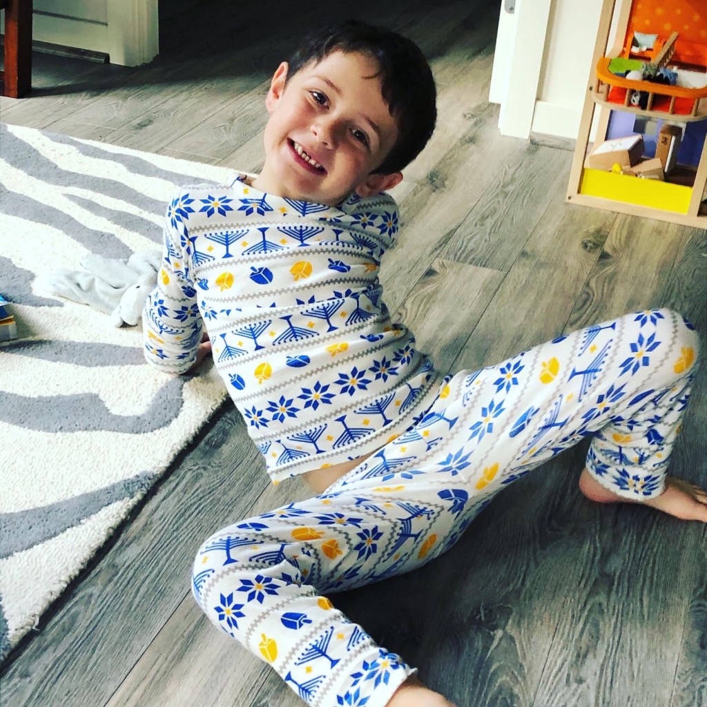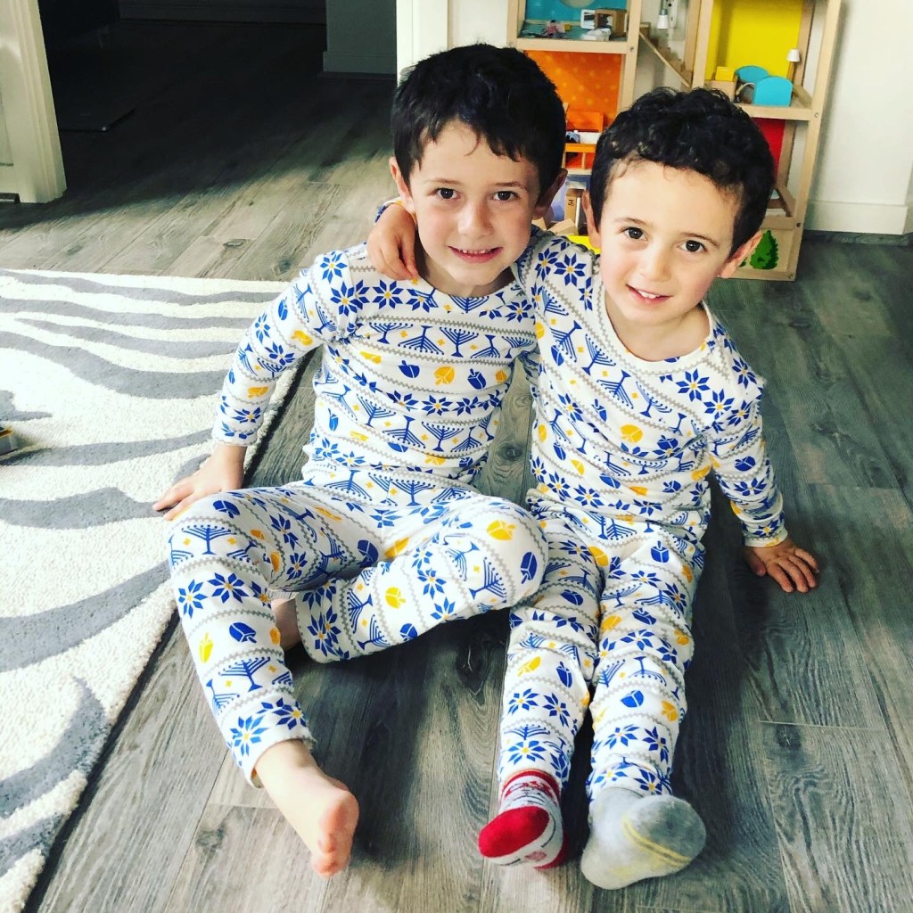 We were into it this year!! The boys love their Chanukah pjs (Dylan’s favorite – they are first to be worn, even now that Chanukah is over). And they had a great time at our neighborhood menorah lighting, with crafts, pizza, sufganyot and hot chocolate! We were just going to “stop by” and Hudson insisted on staying longer so he could play with his buddy that he bumped into 🙂