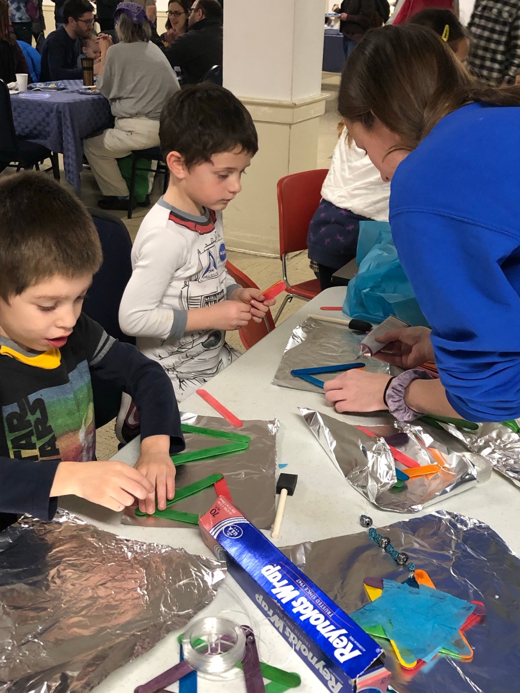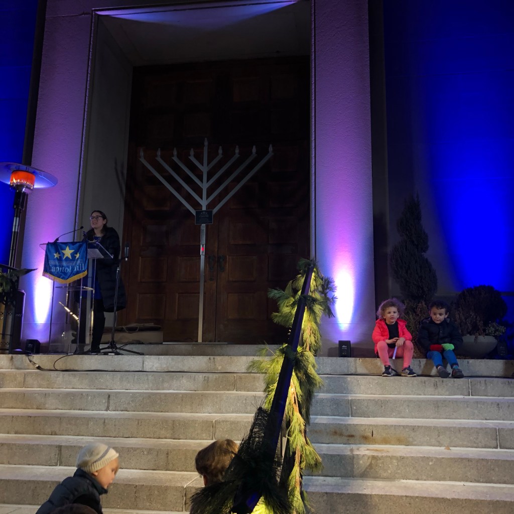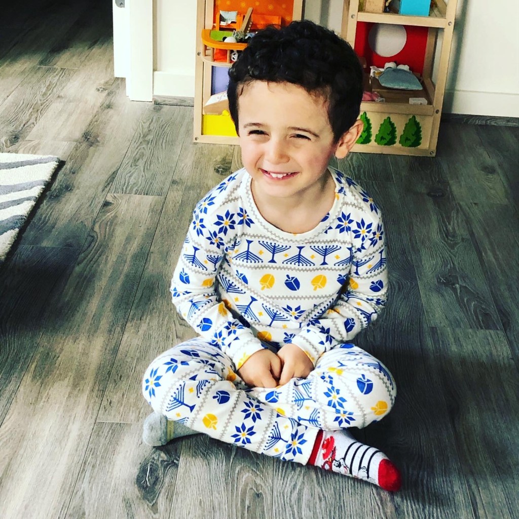 We were into it this year!! The boys love their Chanukah pjs (Dylan’s favorite – they are first to be worn, even now that Chanukah is over). And they had a great time at our neighborhood menorah lighting, with crafts, pizza, sufganyot and hot chocolate! We were just going to “stop by” and Hudson insisted on staying longer so he could play with his buddy that he bumped into 🙂